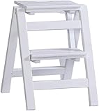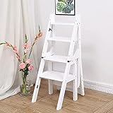 CELECH Massivholz-Tritthocker, Leiterstuhl, Hocker, Multifunktions-Holz, faltbar, Regalleiter, Heimbibliothek, 3 Stufen, 150 kg Tragkraft, Tritthocker