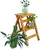 CELECH Massivholz-Klapphocker, Blumenständer aus Holz – Haushalts-Holzleiter, multifunktionaler Indoor-Kletterleiter, Tritthocker (Farbe: B, Größe: 3 Stufen) (A 3 Stufen)